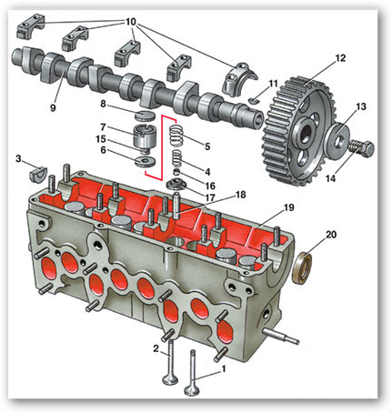 Конструктивные особенности головки блока цилиндров и составляющие ее детали