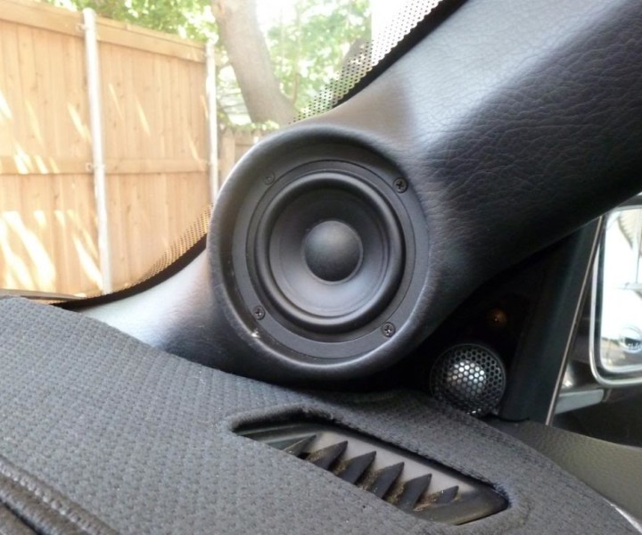 - Для ВЧ/СЧ динамиков выбирайте передние стойки и уголки зеркал. Если внести изменения в конструкцию передней панели, то можно рассмотреть и ее как место установки подиумов под такие акустические излучатели.