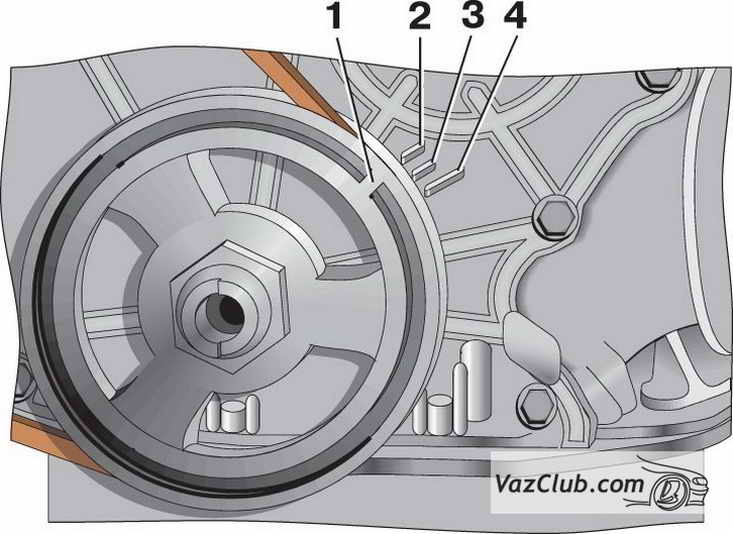 Также вы можете найти на ободе шкива обозначение верхней мертвой точки, также на шкиве имеется небольшой наплыв, расположенный напротив отметки верхней мертвой точки.