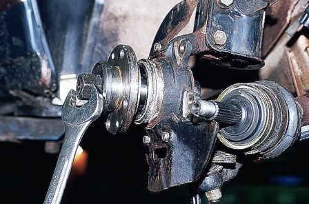 Для производства этих работ, необходимо произвести аккуратный демонтаж поворотного кулака и полностью снять ступицу.